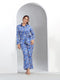 The printed trove gracefully compliments the wide leg pants, creating a perfect harmony of modern flair and timeless elegance.