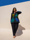 This chic cream co-ord set featuring a tailored button-down shirt with a striking pink petal applique and straight-cut pants for a minimal yet stylish look. Perfect for casual outings or sunny brunches, accessories effortlessly with statement sunglasses, geometric earrings, and a pearl beaded handbag.